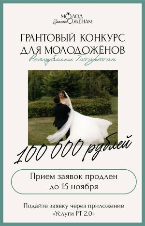Правительство Республики Татарстан объявляет о продлении сроков подачи заявок на уникальную программу поддержки молодых семей. У будущих супругов теперь есть возможность подать документы на получение свадебного гранта до 15 ноября 2025 года. Эта беспрецедентная социальная инициатива реализуется при поддержке Раиса РТ Рустама Минниханова.