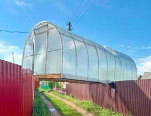 .В Набережных Челнах после мощного урагана с ливнем, обрушившегося на город вечером, между дачными участками появился необычный «надземный переход» из теплицы.