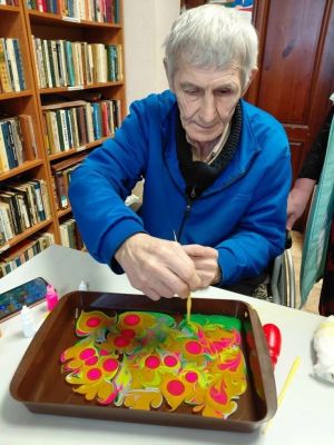 В доме-интернате прошел мастер-класс по рисованию на воде в технике Эбру