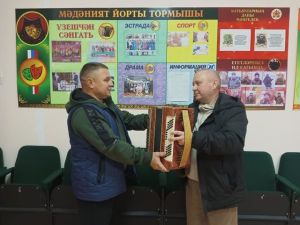 Флорит Рахимов передал в дар сельскому клубу свою гармонь