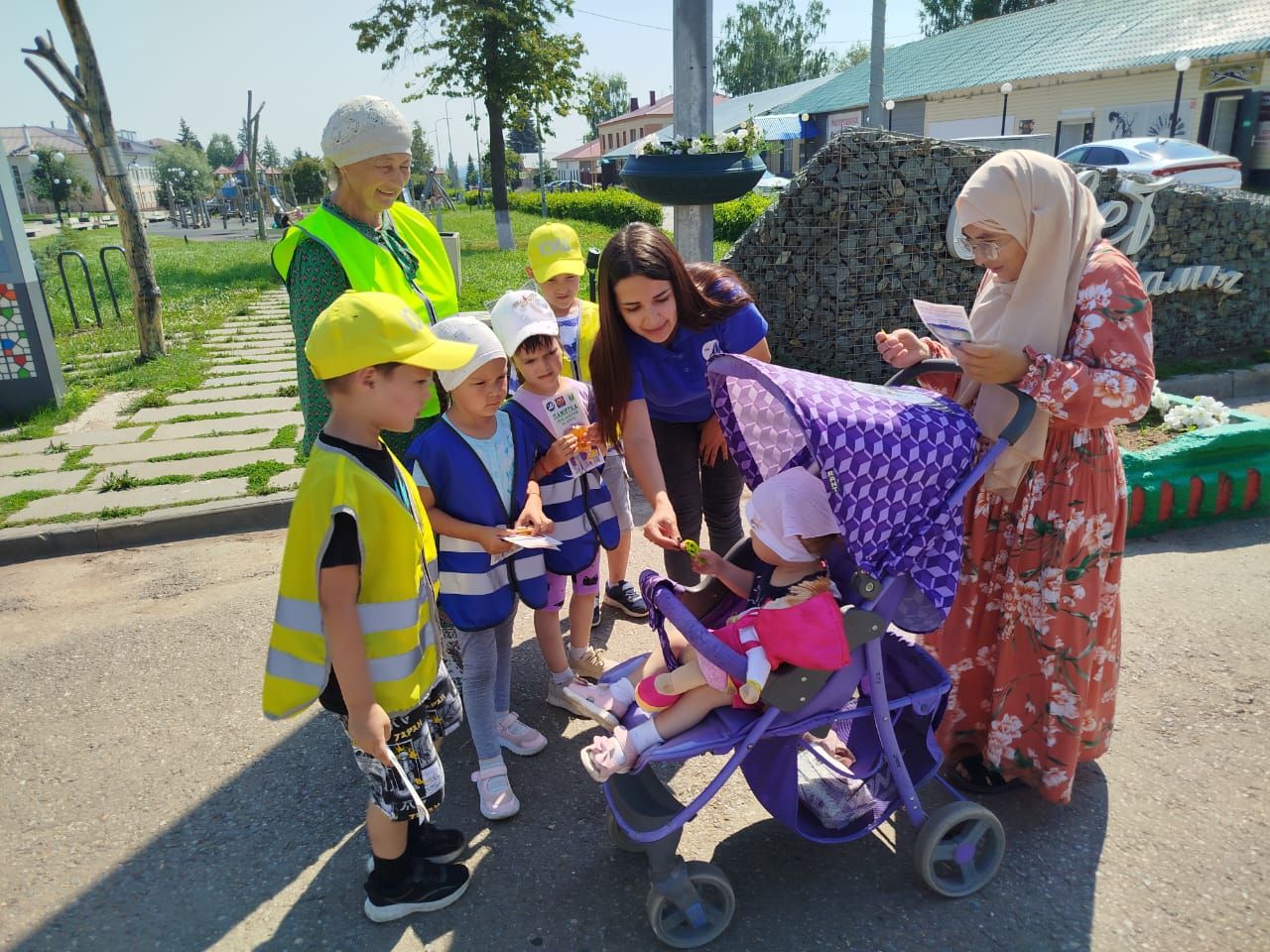 Начальник Мамадышского отделения профилактики ГБУ "БДД" Гульназ Ягудина, муниципальный служащий Диляра Идиятова и юные инспекторы движения (ЮИД) из детского сада №10 "Милэшкэй" провели разъяснительные беседы с жителями города.