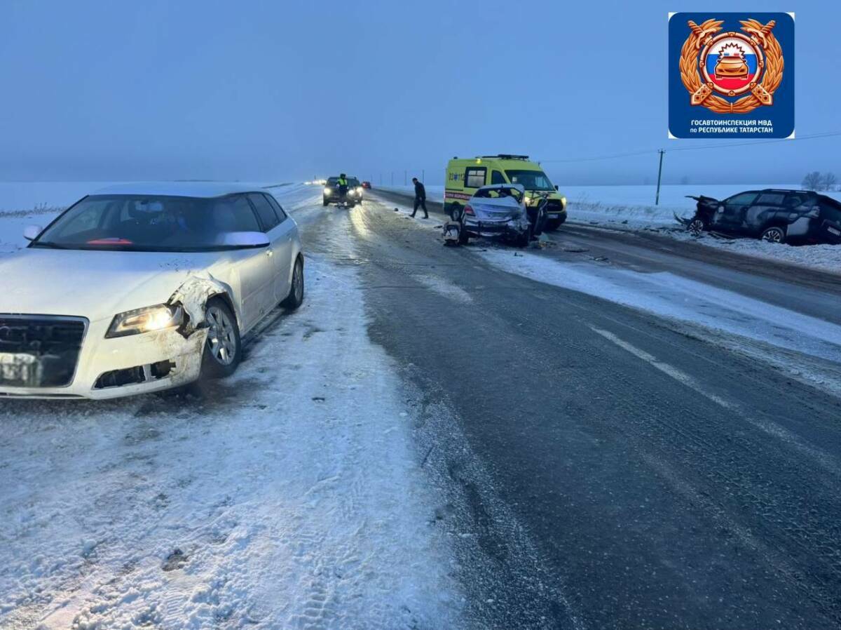 Уже в этом году 2 января в Лаишевском районе РТ женщина – водитель автомобиля Hyundai выехала на встречную полосу и столкнулась с автомобилями Toyota и Audi.