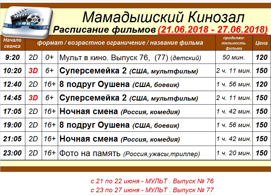 18+Обновленное расписание фильмов с 21 по 27 июня.
