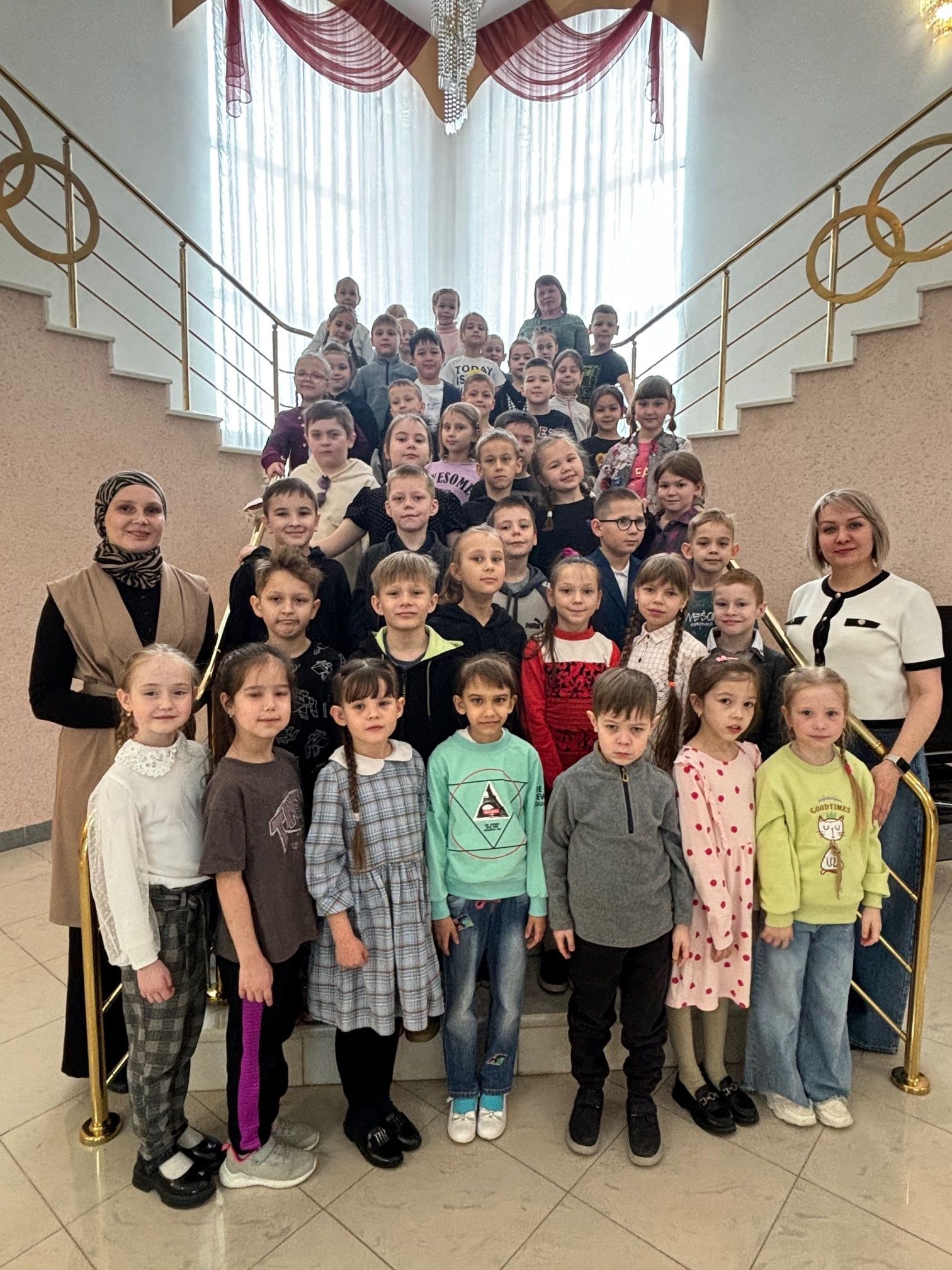 Около 50 учащихся первых классов школы №1 посетили Дворец бракосочетания, где для них провели необычный урок. Мероприятие было организовано в рамках выставки «Семья Победы», посвященной 80-летию Победы в Великой Отечественной войне.