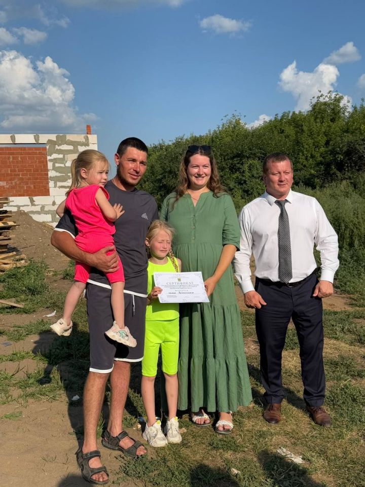 Семья Зелениных, переехавшая из Набережных Челнов на свою историческую родину в деревню Соколка Мамадышского района, получила сертификат на строительство жилого дома в рамках муниципальной программы поддержки. Вручил лично глава района Вадим Никитин.