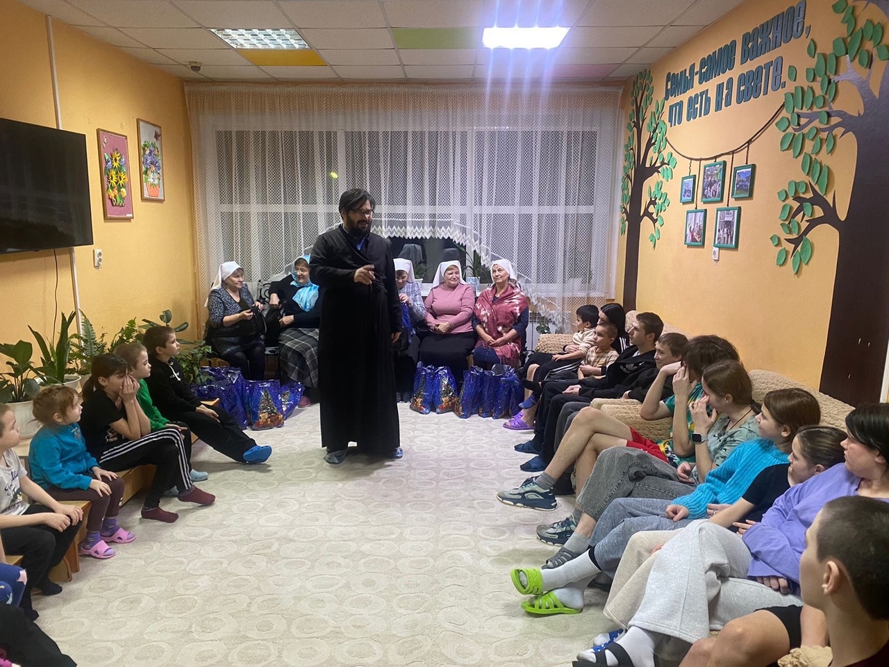 Священник иерей Олег Малышев вместе с сестрами милосердия при храме преподобной Ксении Римляныни города Мамадыш посетили социальный приют для детей и подростков «Надежда».