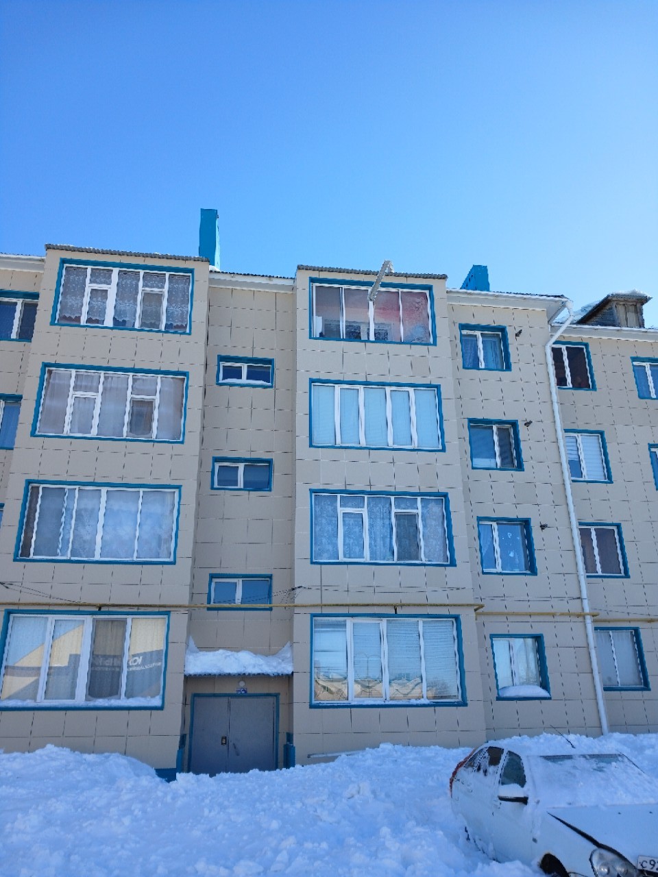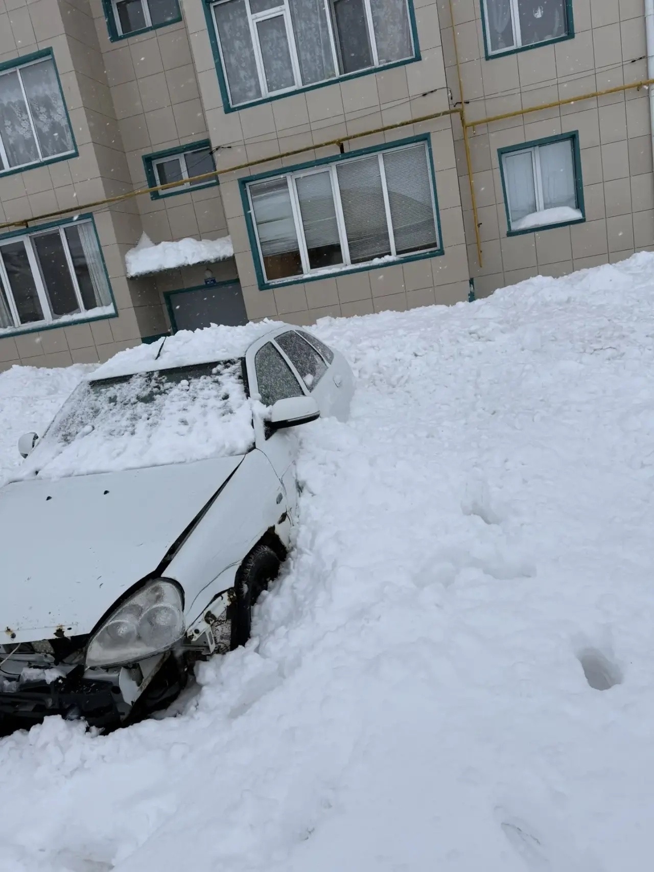 Под тяжестью снега и льда пострадал припаркованный у дома автомобиль — у машины разбито заднее лобовое стекло, повреждения получил весь салон, который оказался завален снегом.