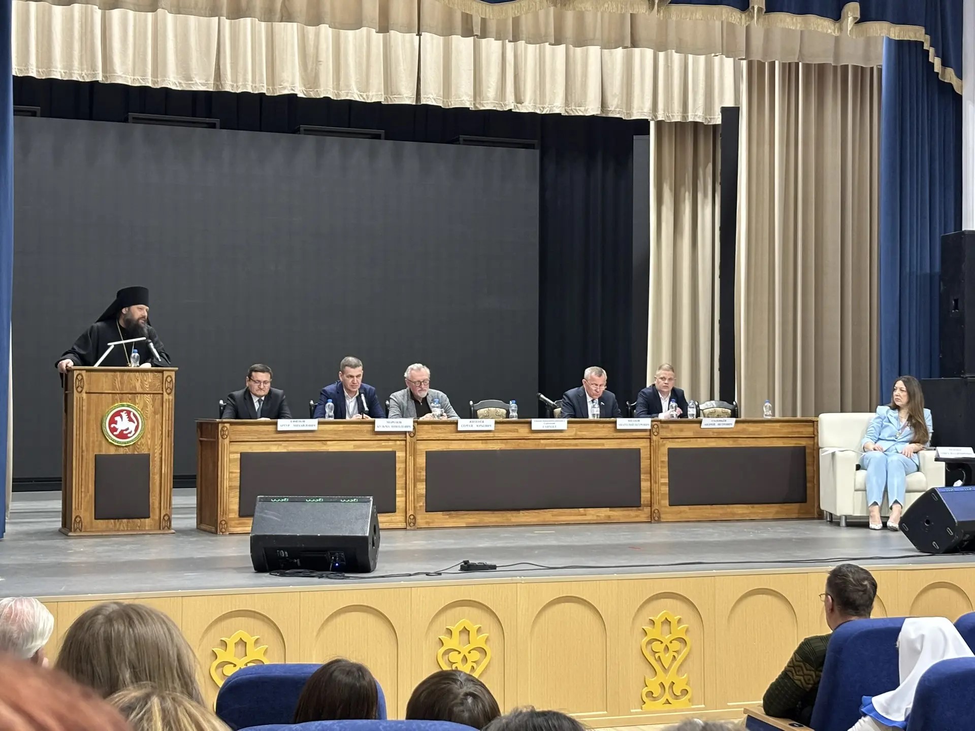 По окончании литургии участники и гости переместились в Районный дом культуры, где началась основная часть конференции. С приветственным словом выступил руководитель исполнительного комитета Мамадышского района Артур Ефимов.