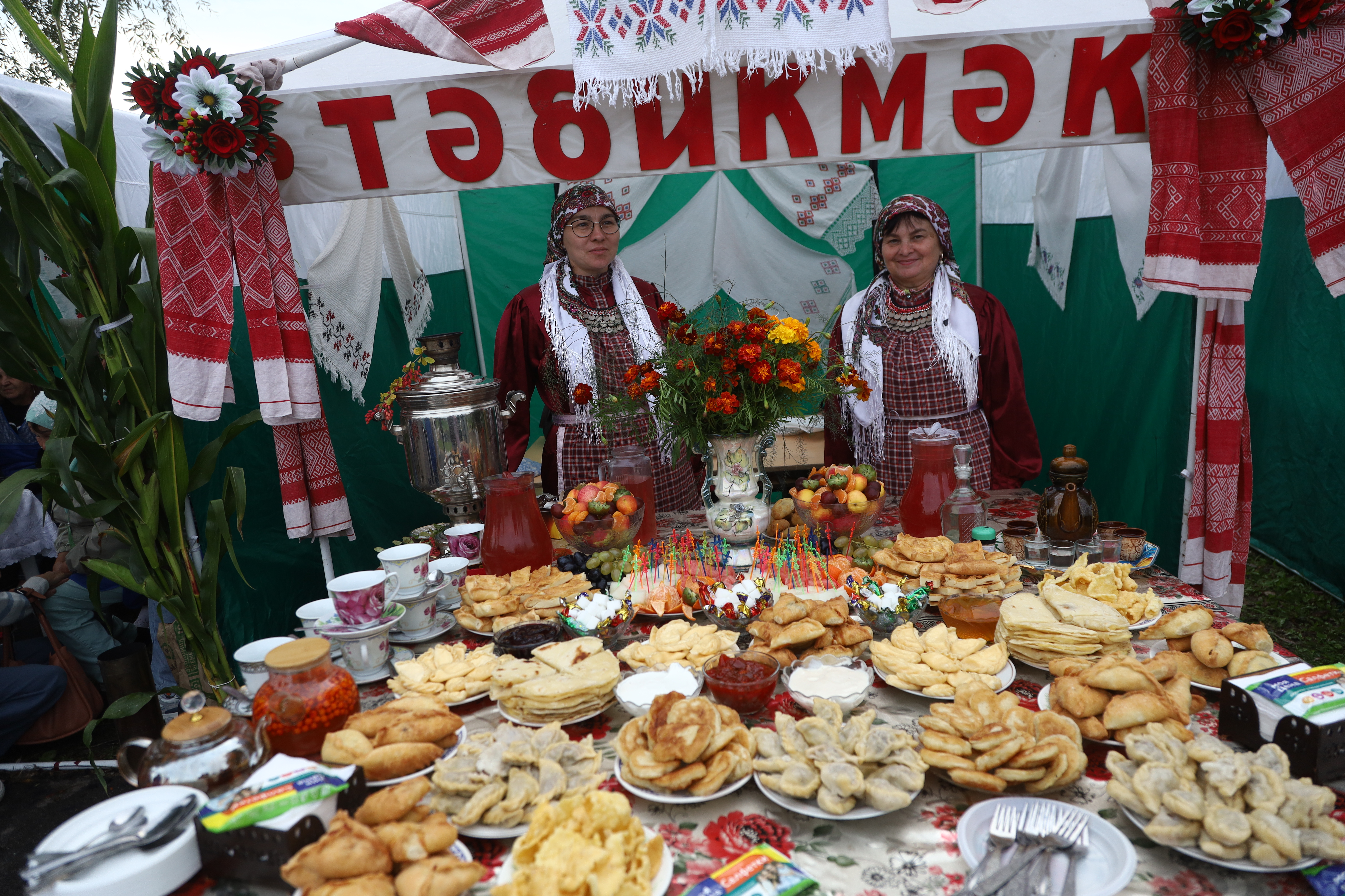 В этом году дух праздника чувствовался особенно сильно. Пять богатейших столов, накрытых силами местных школ, буквально ломились от угощений. Мимо них было невозможно пройти: ароматы свежей выпечки, пряных трав и душистых чаев создавали невероятную атмосферу радушия и щедрости. Гости праздника с искренним интересом и аппетитом знакомились с кулинарными традициями татар, русских, кряшен, марийцев и удмуртов, и каждый находил для себя что-то новое и невероятно вкусное.