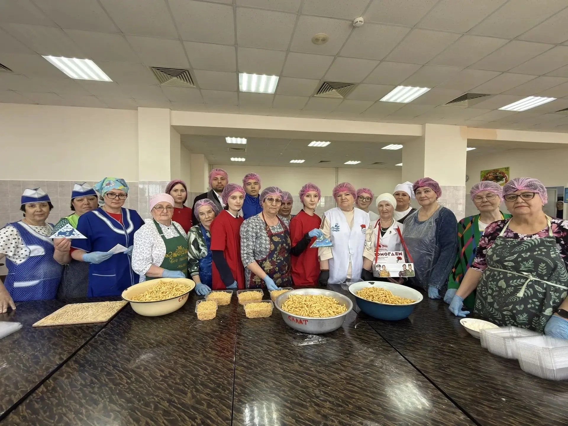 В самом действе приняли участие 9 посетителей центра «Забота», 8 активистов «Движения Первых», 2 наставника, 3 педагога, 5 кухонных работников и 3 родителя.