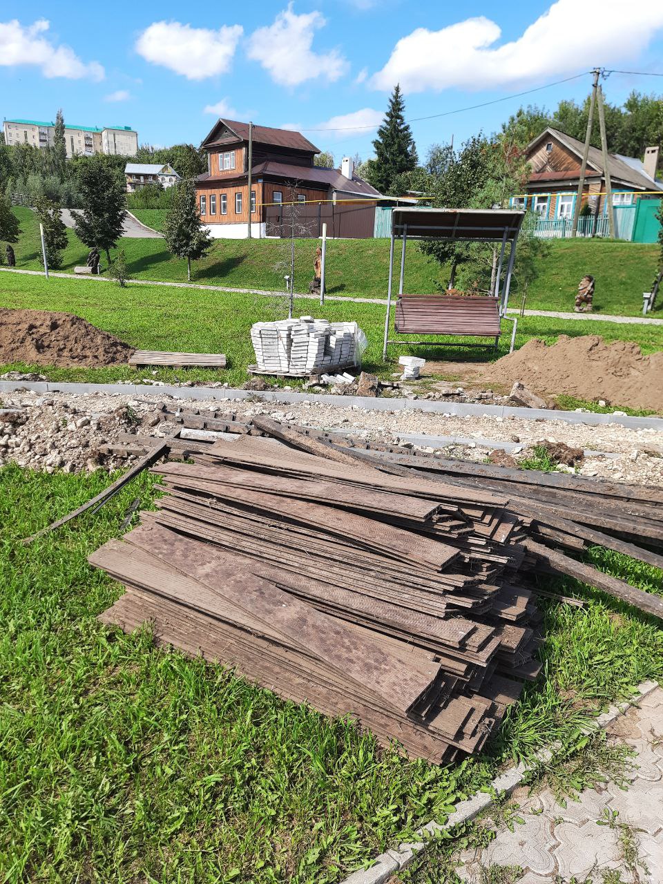 В мамадышском сквере «Яшьлек» демонтируют деревянные дорожки