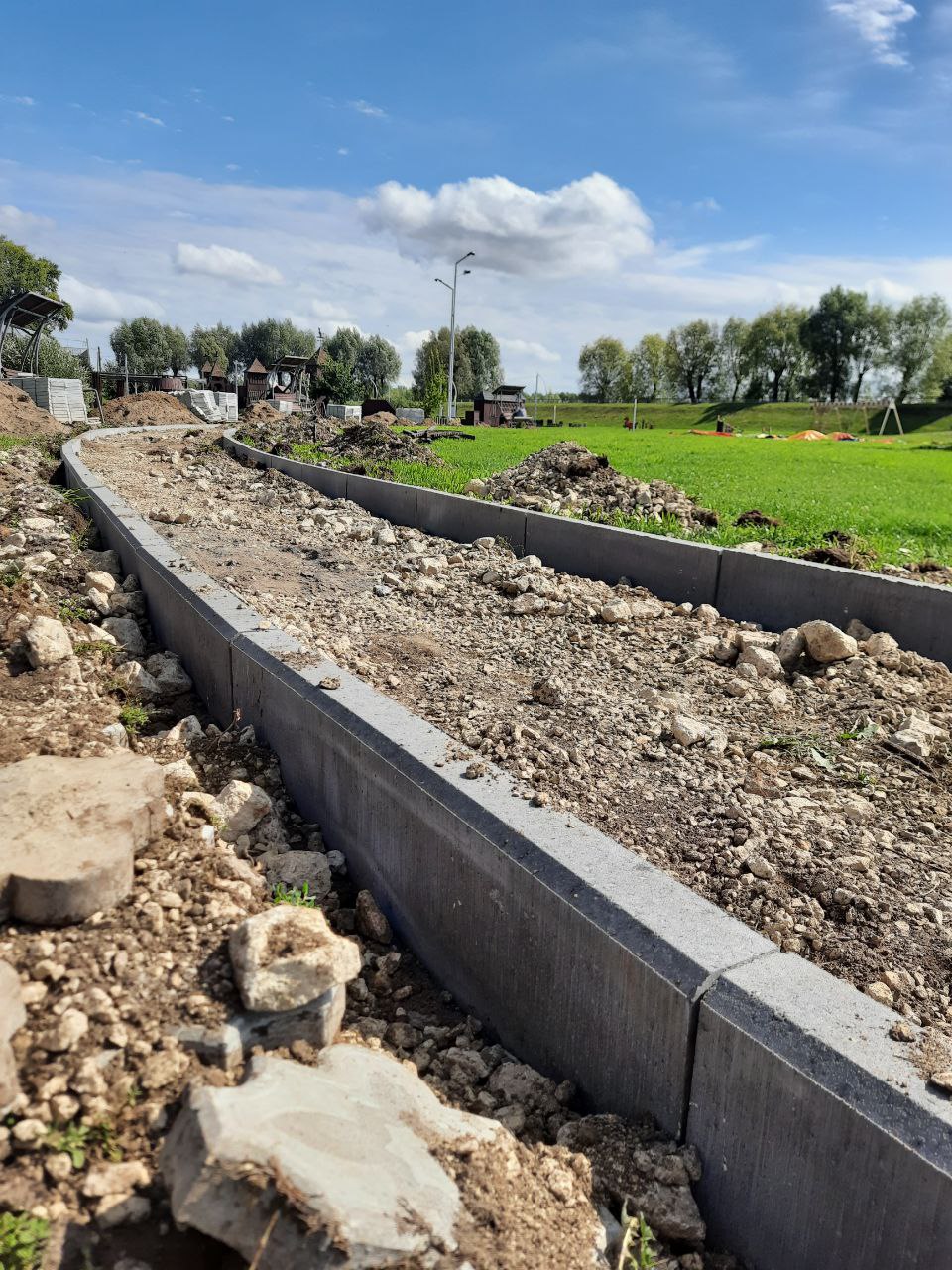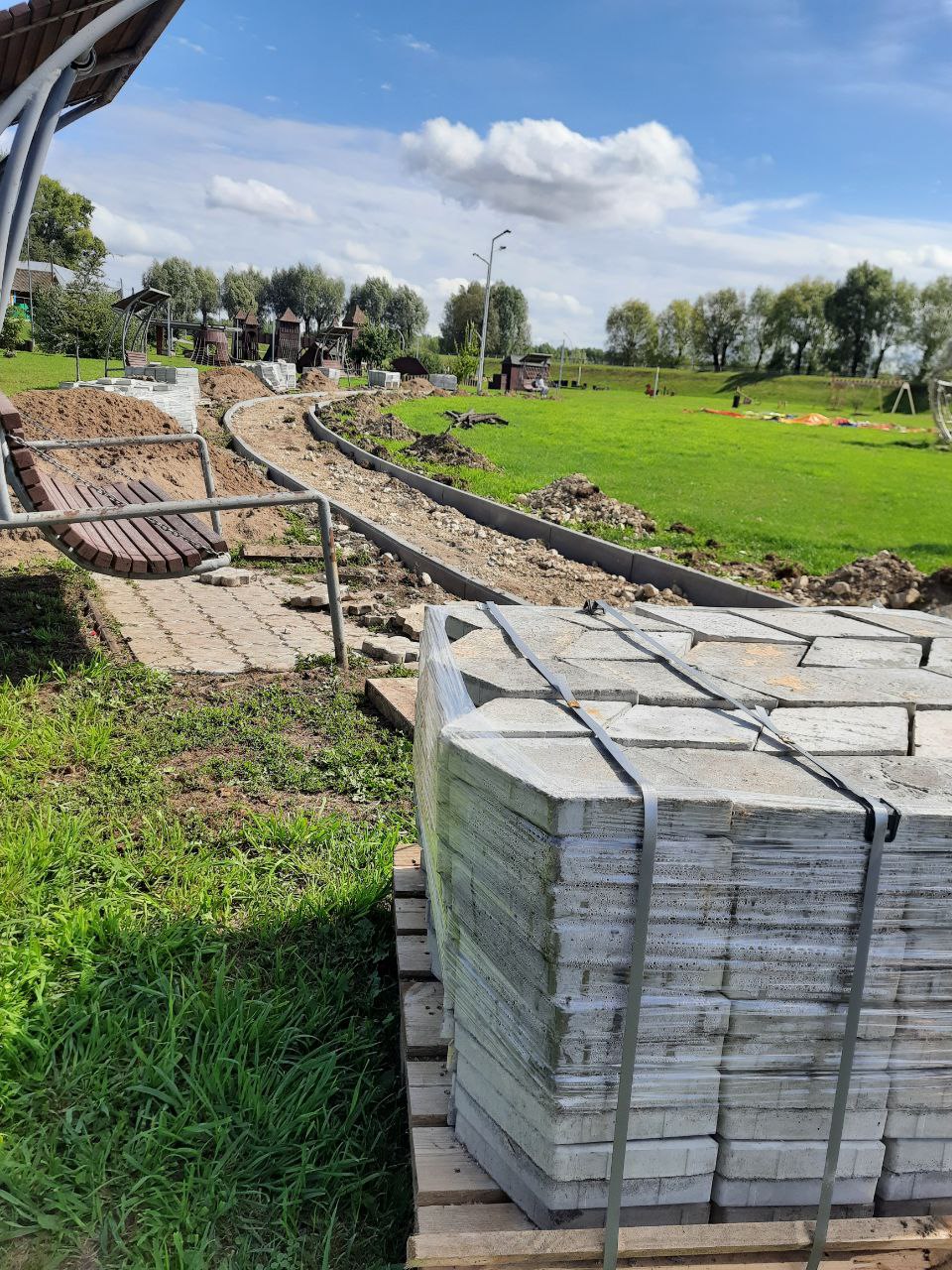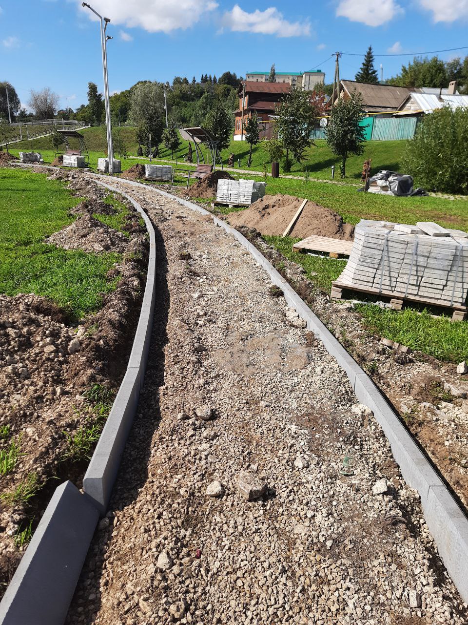 В настоящее время строители готовят основание под брусчатку, уставливают новые бордюры.