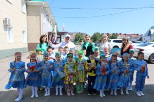 Воспитанники детских садов «Нухрат» и «Светлячок» поздравили сотрудников муниципалитета с наступающим праздником «Сабантуй» и пригласили гостей на детский праздник.